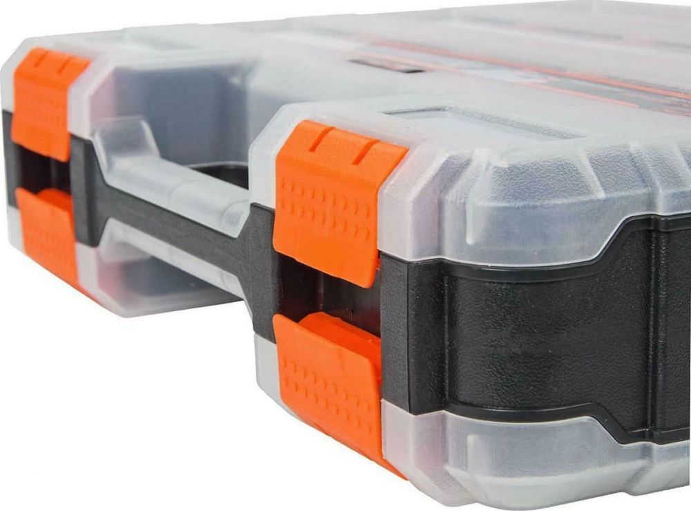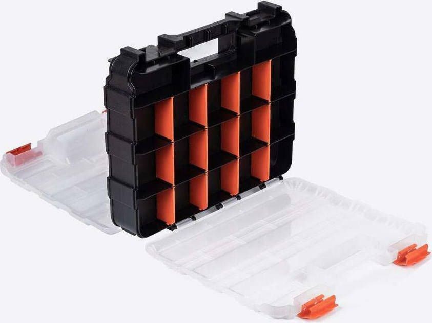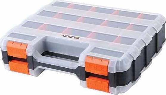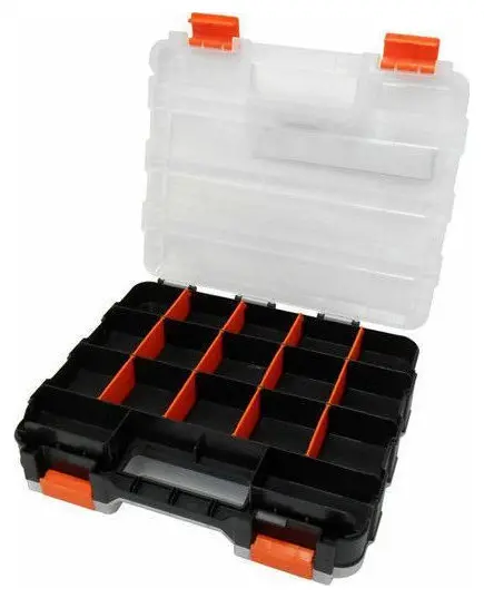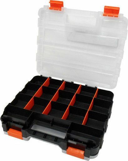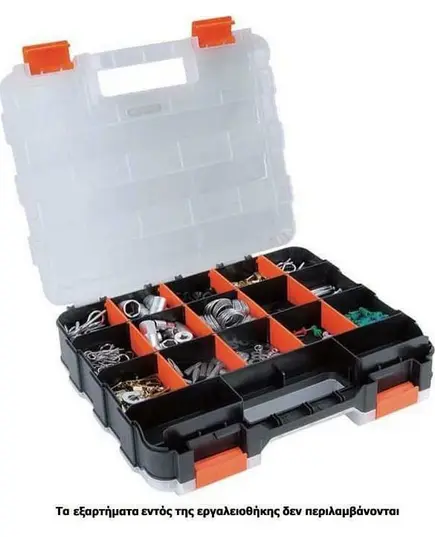 - Ημιδιάφανα ανθεκτικά καπάκια με πλαστικά κουμπώματα, ειδικής κατασκευής για να μην μετακινούνται τα εξαρτήματα από θήκη σε θήκη.