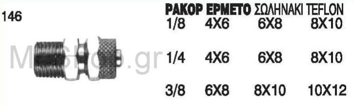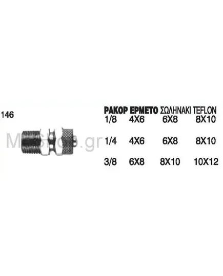 Ρακόρ ερμετο για σωληνάκι teflon αέρος Νο 146