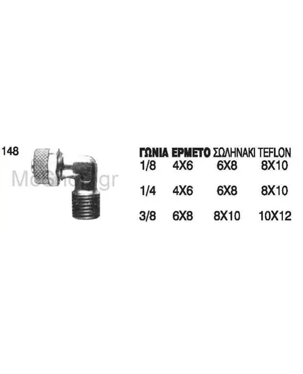 Γωνία ερμετο για σωληνάκι teflon αέρος Νο 148