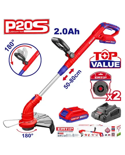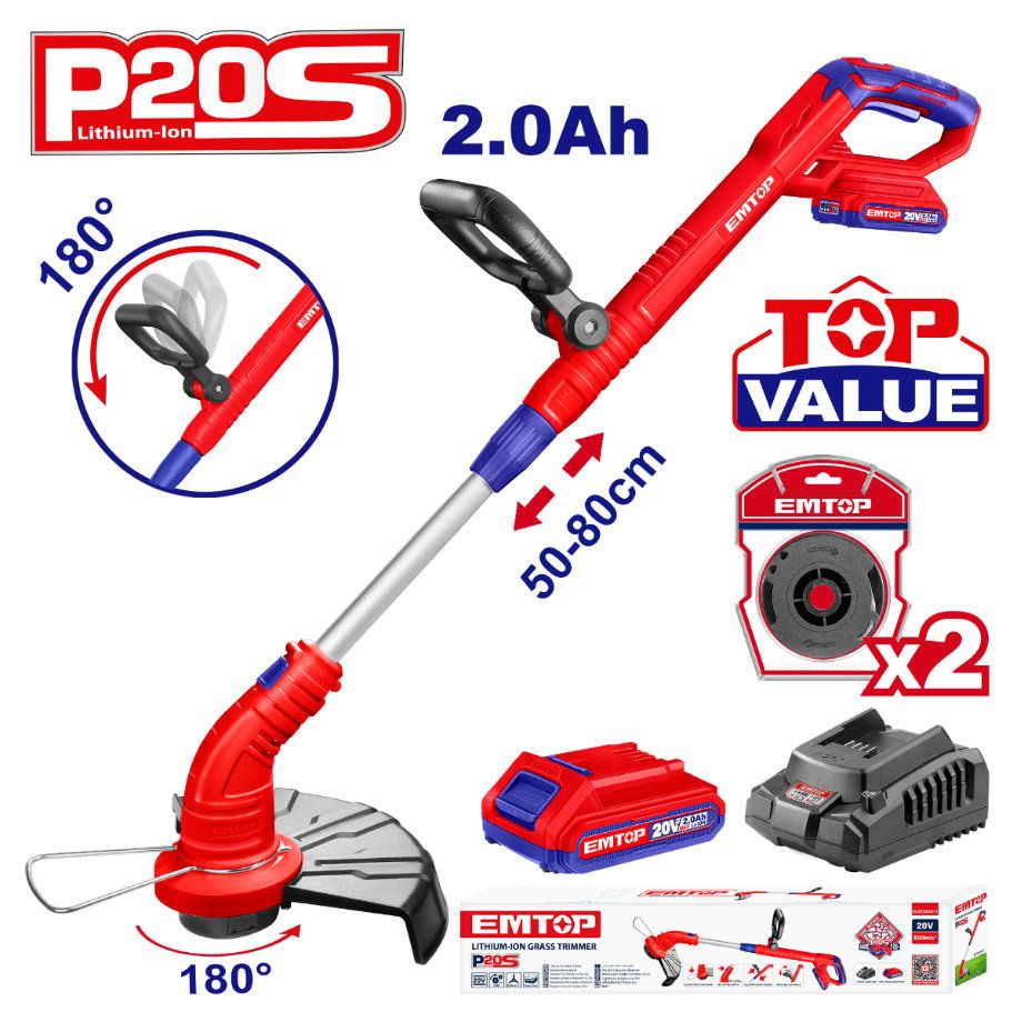 Θαμνοκοπτικό μπαταρίας 20V (περιλαμβάνει μπαταρία 2.0Ah και φορτιστή) ELGT203011 EMTOP
