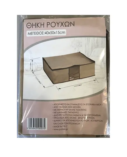 Θήκη υφασμάτινη φύλαξης ρούχων, κουβερτών με φερμουάρ στις 3 πλευρές, χερούλι και παραθυράκι , διαστάσεων 40x50x15 εκατοστών