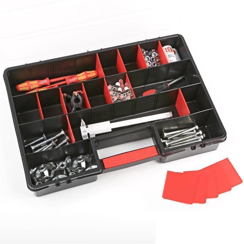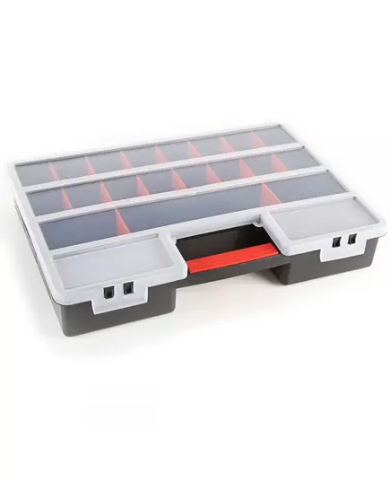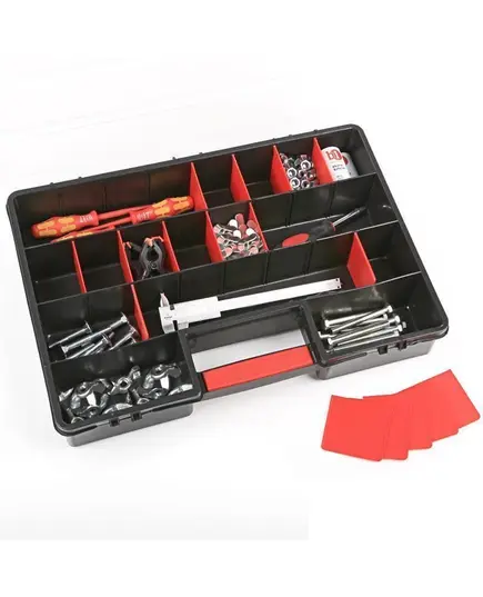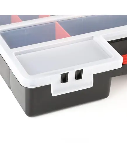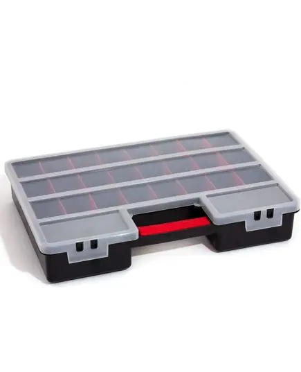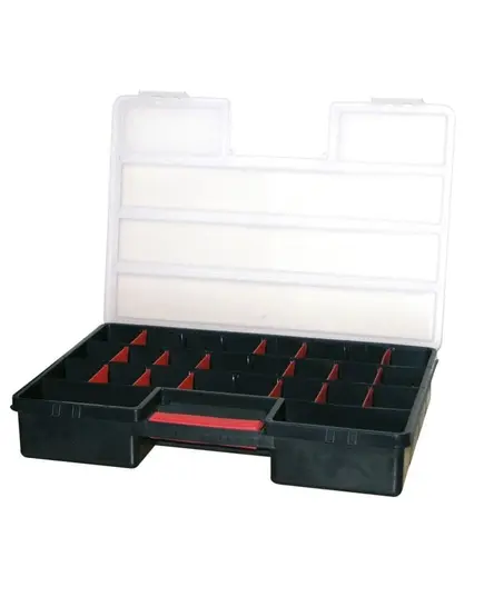 Θήκη υλικών πλαστική με μεταβλητές θέσεις μαύρη με ημιδιάφανο καπάκι organizer XL 46x33x8 εκατοστών Patrol