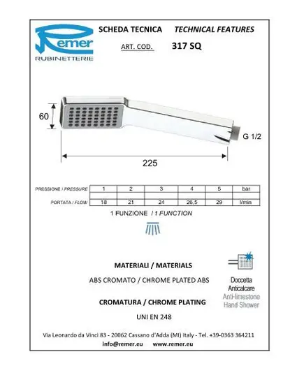 Τηλέφωνο μπάνιου ψεκασμού χρωμέ MARTE Remer 317-SQ