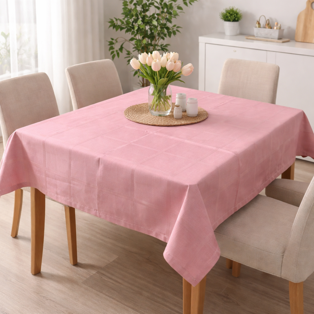Το μονόχρωμο τραπεζομάντηλο σε ροζ χρώμα και καρό σχέδιο προσφέρει ένα διαχρονικό μοτίβο σε κλασικό στυλ για το τραπέζι.