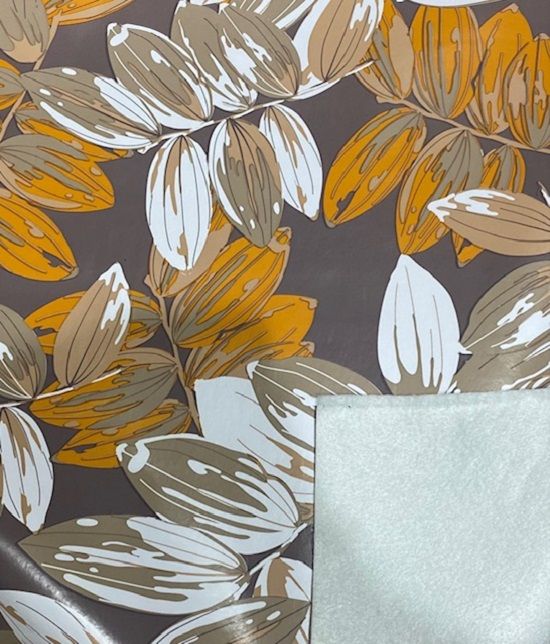 Τραπεζομάντηλο πλαστικό (μουσαμάς) Φύλλα με χνούδι φάρδους 140 εκατοστά (τιμή ανά μέτρο)