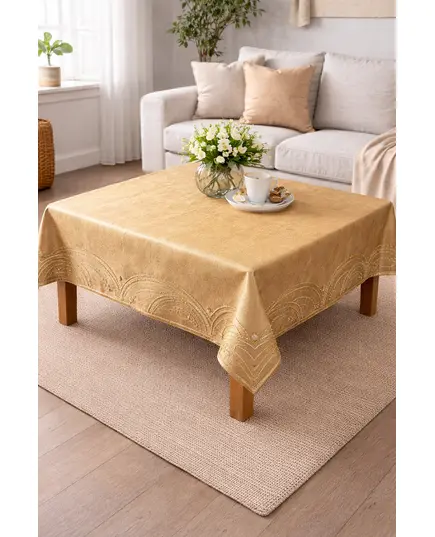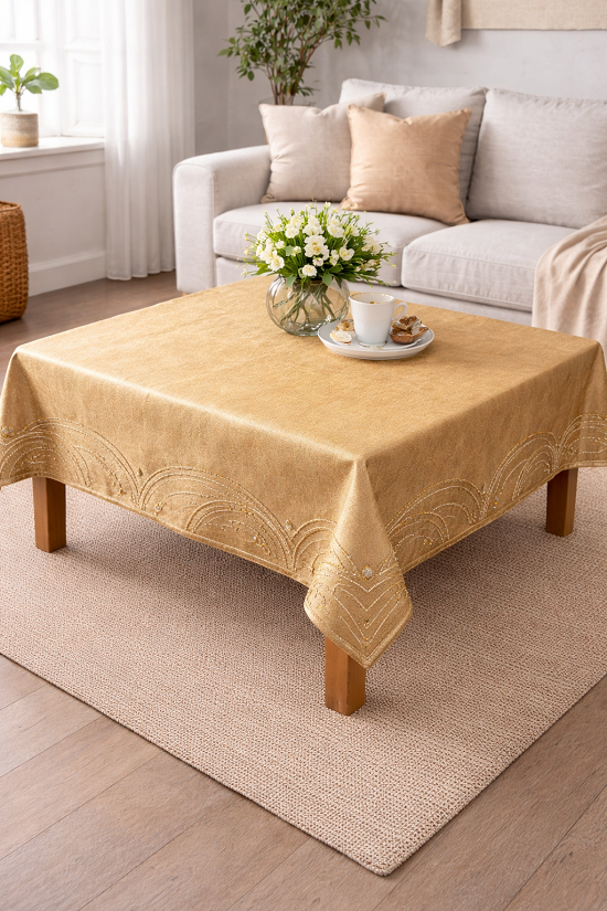 Καρέ Τραπεζομάντηλο με κέντημα 85x85εκ. Χρυσό-καφέ
