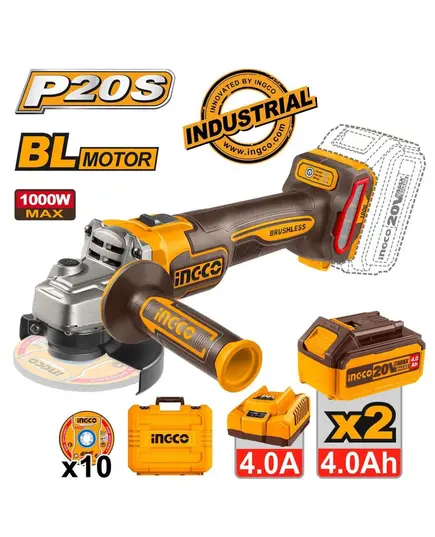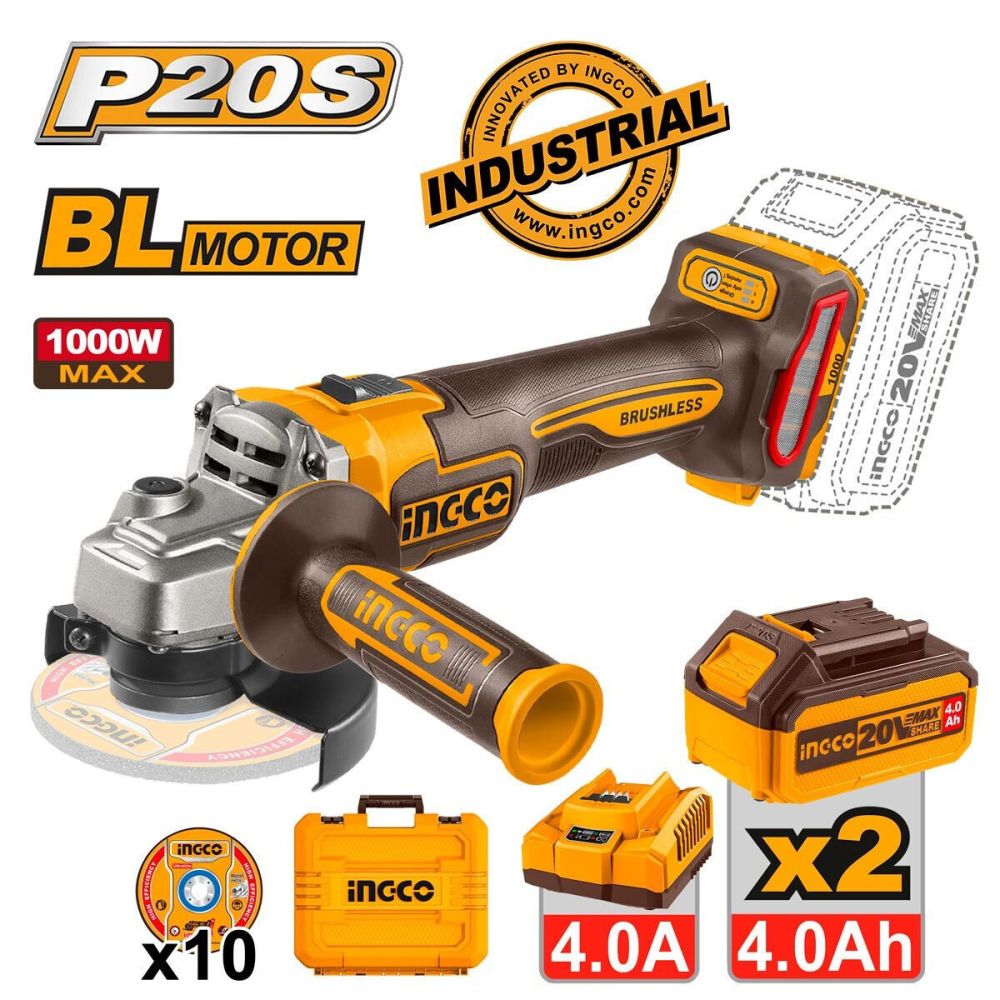 Γωνιακός τροχός της εταιρείας Ingco, με μπαταρία λιθίου 20V χωρητικότητας 4Ah. Δέχεται δίσκους με διάμετρο έως και 115mm, έτσι καλύπτει ικανοποιητικά τις περισσότερες ερασιτεχνικές και επαγγελματικές εργασίες καθώς μπορεί να κόψει σε βάθος έως 3 εκατοστά. Ακόμη, έχει δυνατότητα προσαρμογής της ταχύτητας έως 9000rpm, έτσι βοηθάει σε εργασίες που απαιτούν λιγότερη ταχύτητα και περισσότερη λεπτομέρεια όπως λείανση, τρόχισμα και DIY κατασκευές. Τέλος, διαθέτει νέας τεχνολογίας κινητήρα χωρίς ψύκτρες, που προσφέρει μεγαλύτερη αυτονομία, διάρκεια ζωής και μειώνονται οι ανάγκες συντήρησης αλλά και οι προμήθειες ανταλλακτικών.