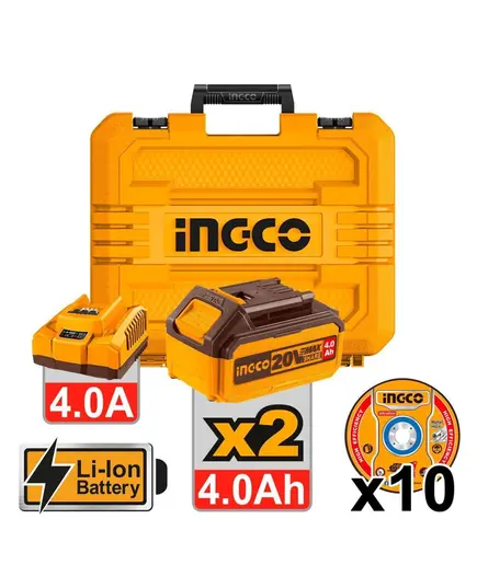 Τροχός κοπής 115mm Μπαταρίας Brushless με Ρύθμιση Στροφών 2x4Ah Ingco CAGLI271532E + 10 δισκάκια