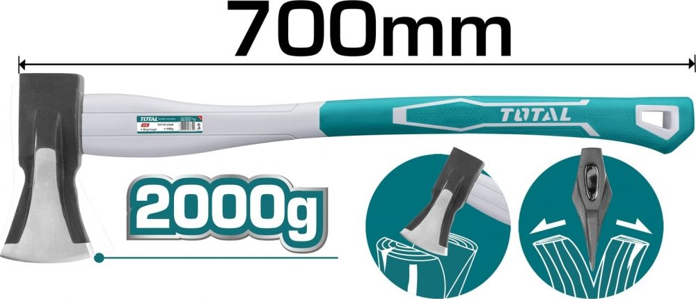 Τσεκούρι σφήνας με λαβή 70cm fiberglass 2000gr TOTAL THT798026