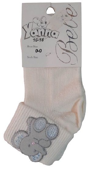 Καλτσάκια βρεφικά No 23-26 άσπρα βαφτηστικά με ελεφαντάκι