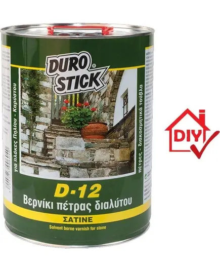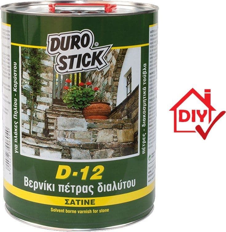 Κατάλληλο για χρήση σε εξωτερικές και εσωτερικές επιφάνειες, δεν κιτρινίζει, ούτε ξεφλουδίζει με το πέρασμα του χρόνου, με αποτέλεσμα να αναδεικνύει τη φυσική ομορφιά των πετρών, να τονίζει τα νερά τους και να δίνει την αίσθηση του «μόνιμα βρεγμένου» στις επιφάνειες. Το ακρυλικό βερνίκι πέτρας D-12, προστατεύει τις πέτρες από τη φθορά του χρόνου και τους αρμούς των πλακόστρωτων δαπέδων από τη βαθμιαία αποσάθρωση που προκαλείται από τις συνθήκες του περιβάλλοντος.