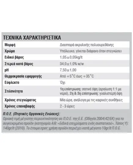 ΚΑΘΑΡΙΣΜΟΣ Τα εργαλεία καθαρίζονται με ζεστό νερό και σαπούνι, αμέσως μετά τη χρήση τους. ΚΑΤΑΝΑΛΩΣΗ 1lt/8-10m², ανάλογα με την απορροφητικότητα της επιφάνειας.