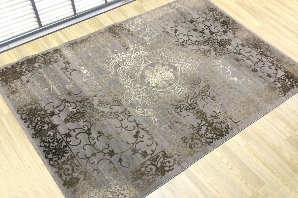 Χαλί μηχανής από τη σειρά Vintage της εταιρείας Tzikas Carpets σε γκρι απόχρωση με μπεζ και καφέ λεπτομέρειες . Στιβαρό χαλί με καλοδουλεμένη μίξη χρωμάτων και εντυπωσιακά vintage μοτίβα, που μπορεί να τοποθετηθεί σε όλους τους χώρους του σπιτιού. Είναι κατασκευασμένο με ανεξίτηλα νήματα από heatset πολυπροπυλένιο και polyester, ενώ το βάρος του είναι 2.650gsm. Έχει ανάγλυφη επιφάνεια με μαλακό πέλος ύψους 12mm, ενώ η πυκνότητά του είναι 624.000 κόμπους/τ.μ. Το υπόστρωμά του είναι υφαντό. Είναι αντιστατικό άρα το σκούπισμα με ηλεκτρική σκούπα είναι εύκολο και αποτελεσματικό. Τα χαλιά της εταιρείας Tzikas Carpets είναι υποαλλεργικά και φιλικά προς την υγεία.