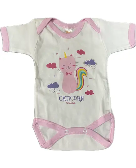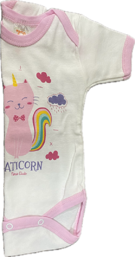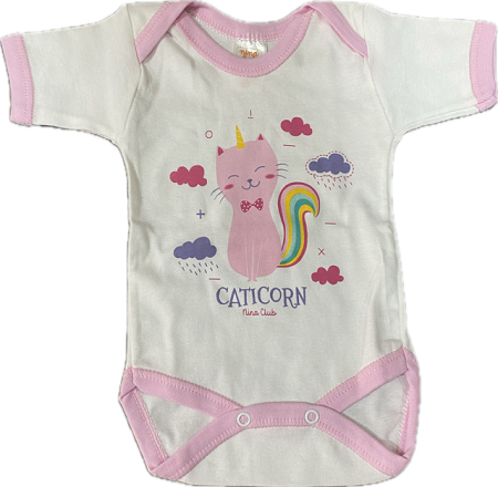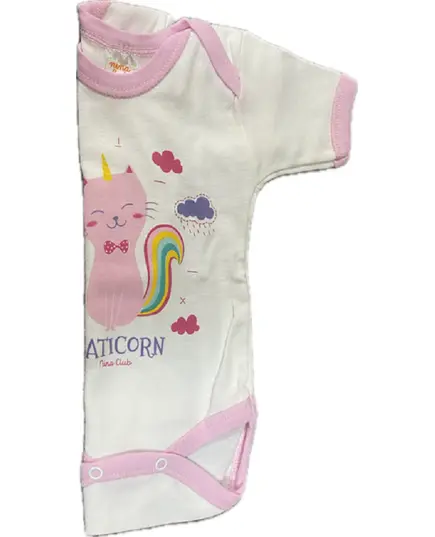 Ζιπουνάκι (φορμάκι) κοντομάνικο λευκό-ροζ ''Caticorn'' No1 (0-3 μηνών)