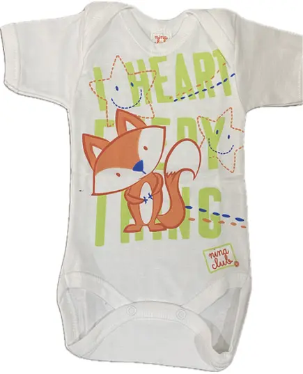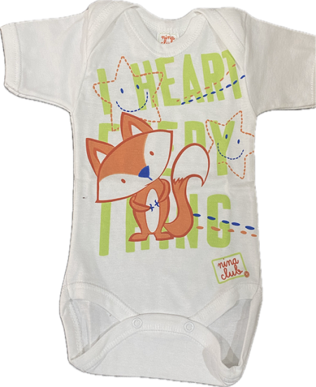 Ζιπουνάκι (φορμάκι) κοντομάνικο λευκό-λαχανί με αλεπού ''Fox'' No2 (3-6 μηνών)