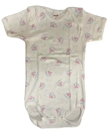 Το ζιπουνάκι (φορμάκι) κοντομάνικο λευκό με καραβάκια No6 (24-36 μηνών) από την εταιρεία Minervakia baby collection,