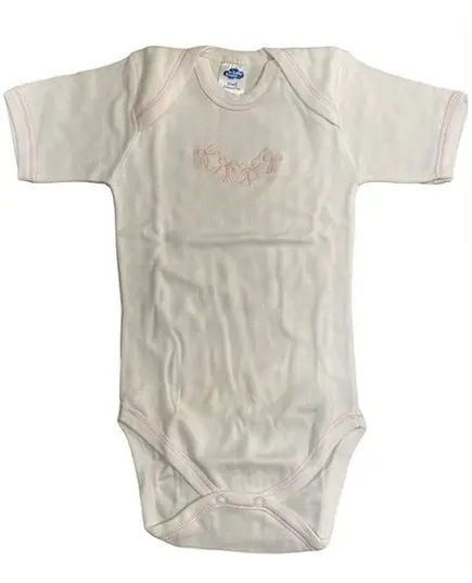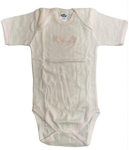 Το ζιπουνάκι (φορμάκι) κοντομάνικο λευκό με ροζ κέντημα No5 (18-24 μηνών) από την εταιρία Αφοί Γιαννακόπουλοι ,
