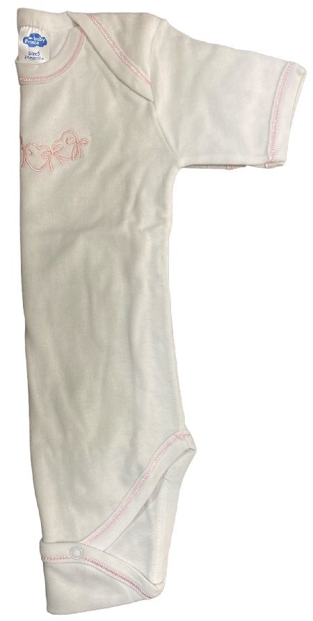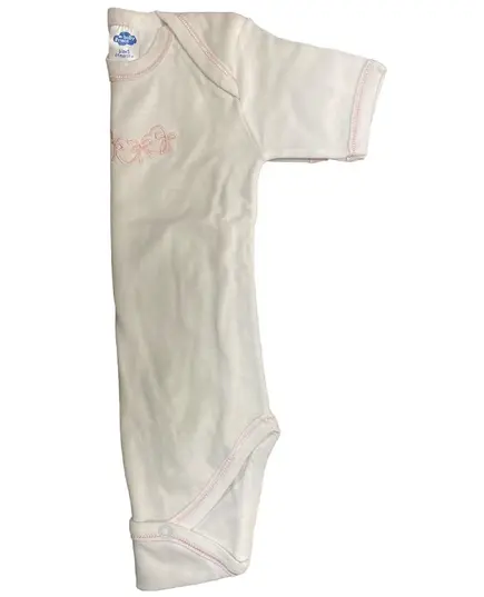 Ζιπουνάκι (φορμάκι) κοντομάνικο λευκό με ροζ κέντημα No5 (18-24 μηνών)