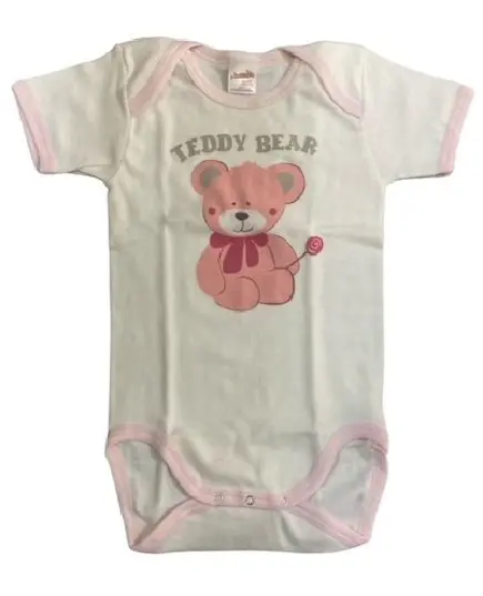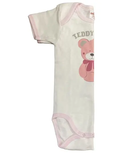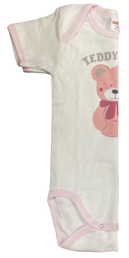 Ζιπουνάκι (φορμάκι) κοντομάνικο λευκό-ροζ "Teddy Bear" No4 (12-18 μηνών)