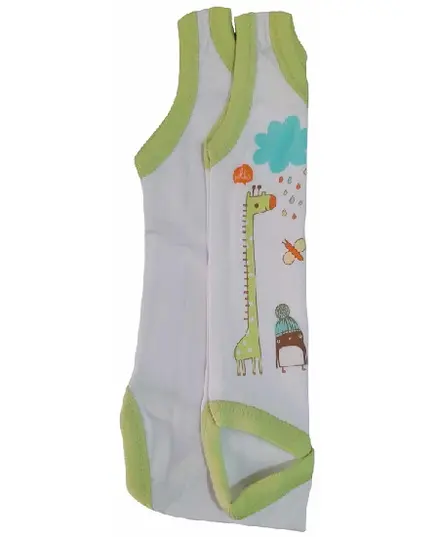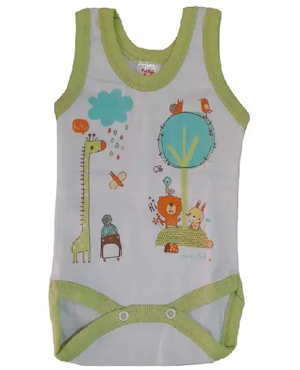 Ζιπουνάκι τιράντα άσπρο-λαχανί με ζωάκια No1 (0-3 μηνών)