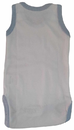 Ζιπουνάκι τιράντα άσπρο-σιέλ με παραμάνα κέντημα No1 (0-3 μηνών)
